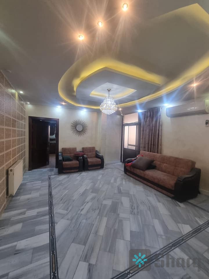 الطابق الثاني شقة واحدة مساحة 320م مكون من صالون مفصول ومعيشة مستقلة واسعة و 4 غرف نوم 1 ماستر 3 حمام ومطبخ وتراس واسع مع تدفئة مركزية راكبة للشقة ومكيفات راكبة